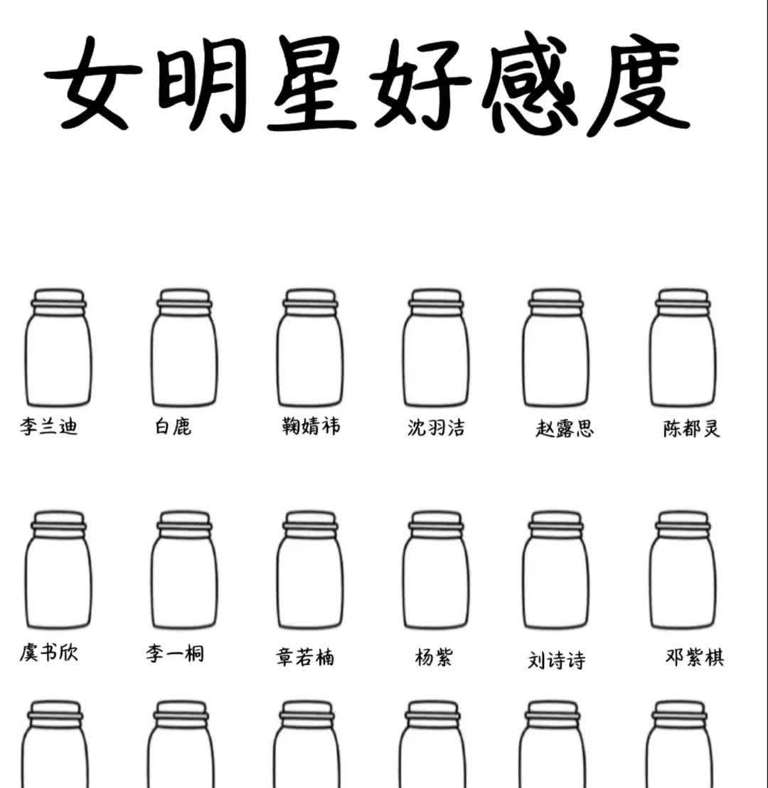 朋友们!这波女明星好感度“瓶子图”来袭!李兰迪、赵露思等好感度可视化,迪丽热巴直接满瓶断层领跑,白鹿标着“下一页”超有梗 ,沈羽洁、刘亦菲等瓶子空空待填充。吃瓜群众速来围观,看看你pick的女星在不在榜?这些好感度瓶子,能精准戳中你的喜好不?