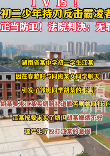 湖南,某中学初二男生因与同班女同学聊天,被隔壁班的男孩记恨上了,因为女同学正是男孩的女友。后男孩找来14个人围殴男生,还逼着对方买烟赔礼道歉。男生为了自保,持刀捅伤两人划伤一人后逃离现场向老师求助。经鉴定,两名被捅伤学生的伤情达到了重伤二级,还有一位是轻伤。后检察院以男生构成故意伤害罪为由提起公诉。没想到,法院竟然这样判了!