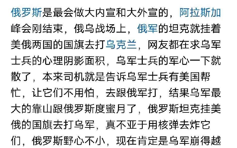 欧洲六大金刚陪着泽连斯基到美国见川普,但是真的想不出欧洲能有什么筹码让川普听欧乌的建议,难道欧洲要跟川普谈共同价值观吗?欧洲也就剩下这点虚伪的价值观了,但是美国总统是川普,人家可对什么共同价值观没有兴趣,人家只对利益有兴趣,那欧洲早就把利益交到美国手上了,现在根本拿不出什么有力的筹码,所以个人觉得欧乌绝对挤不上桌,而且乌军会大溃败,俄军的坦克已经插上美俄两国的国旗去进攻乌军,这一幕真的太讽刺了!