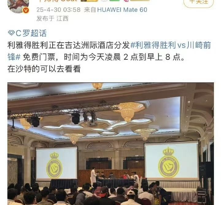 已经过了72小时,卖票第四天,C罗带队参加的沙超杯半决赛依旧有余票。听说某音上还