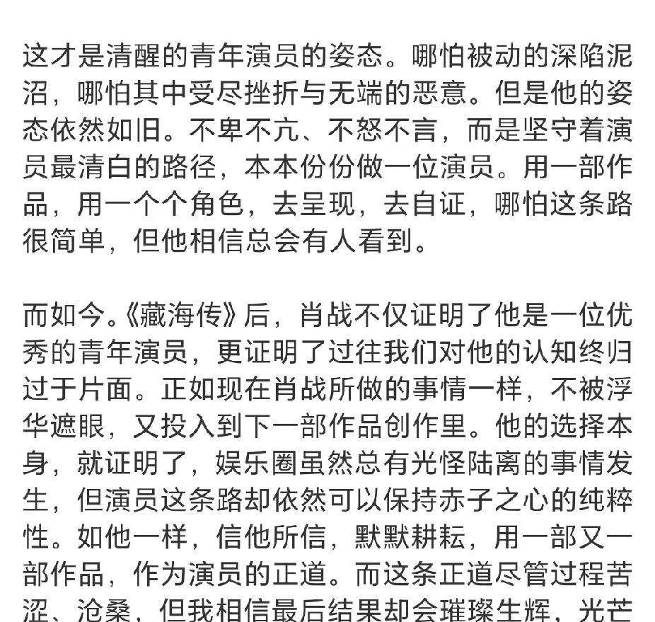 浓度演员加淡人肖战,受得起高峰的繁华,也经得起低谷的磨砺,以后的日子必将繁花似锦