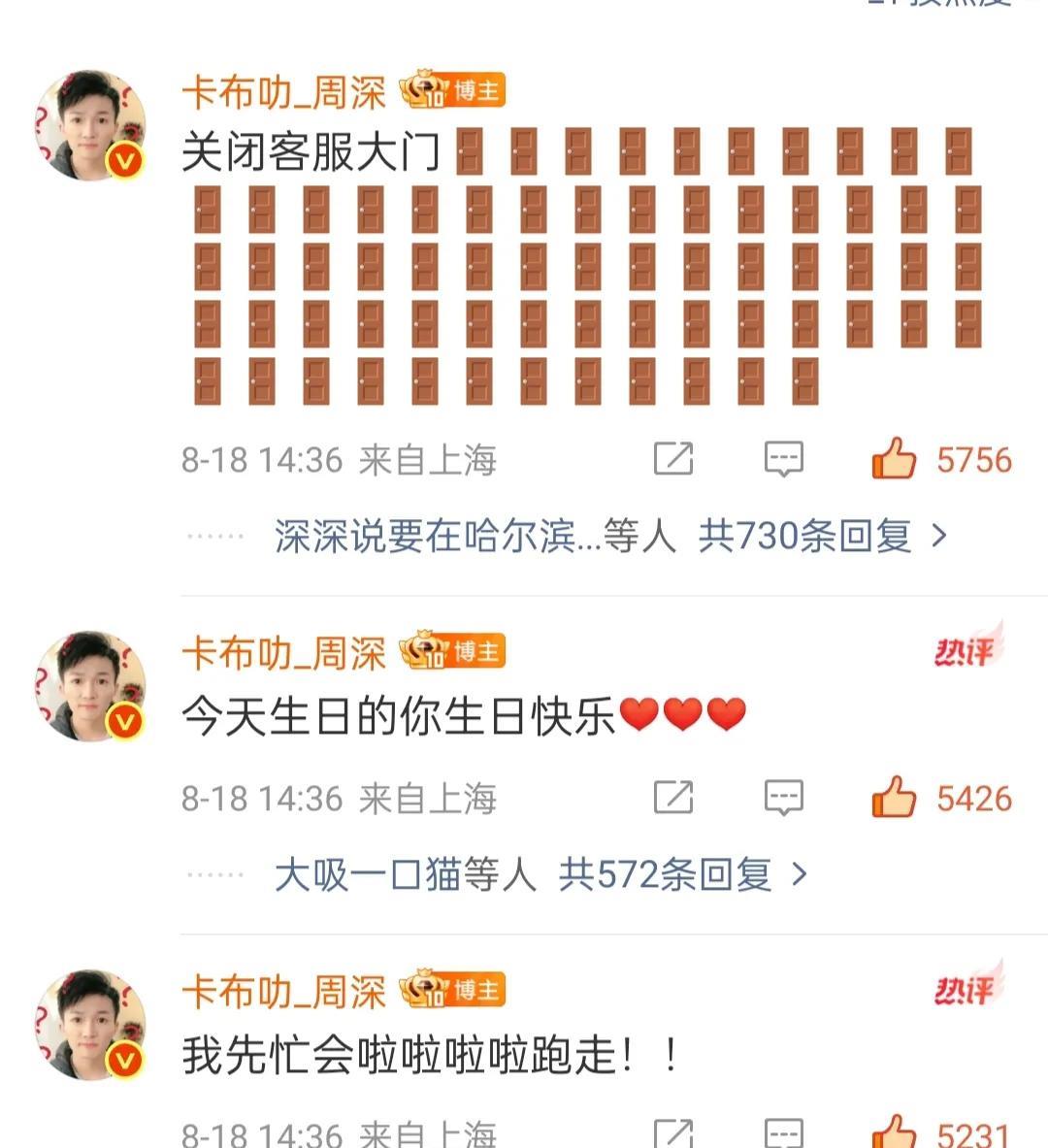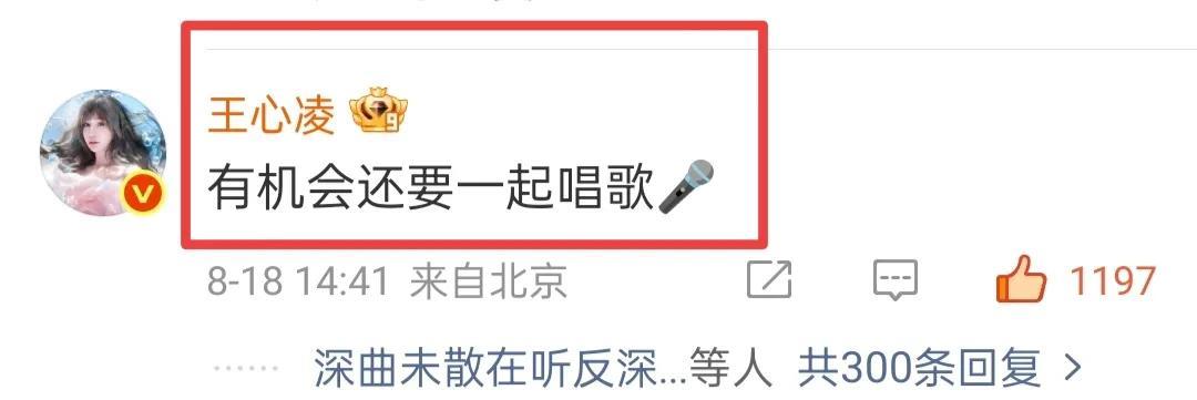 周深上线回复了! 回复了昨天王心凌那一条! 周深:玩的很开心 !真的会紧张! 是,我们已经看出来了!一紧张就疯狂输出[呲牙] 王心凌:有机会还要一起唱歌! 周深上线回复完又去忙了!明天有 W年度光影盛典,这个盛典可以去预约了,8月19日18:00开始! #周深#
