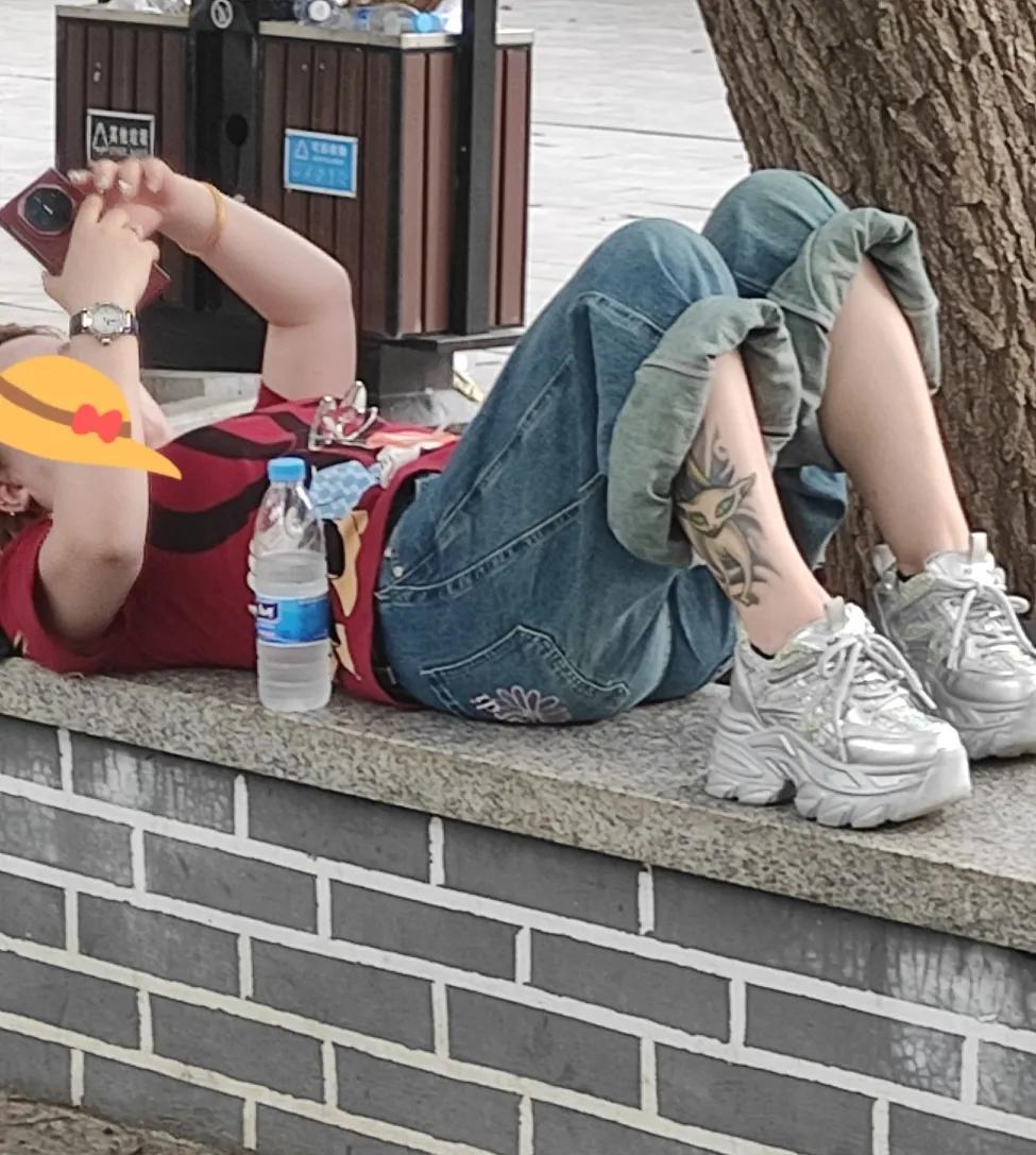 旅游时发现的,随手拍下了这真实的一幕。在景区里面的隔离矮墙上,如此潇洒的席地而躺。可能是真的走累了,好想找个地方休息一会。唉?这矮墙上不是正好吗?也不用管她什么环境什么场景了,先躺下再说吧。在这里看看手机,上上网聊聊天,还好舒服呢。不过没有看明白,这腿上是个什么东东。想问问友友,有看明白的吗? #头号创作者激励计划##景点拍照#
