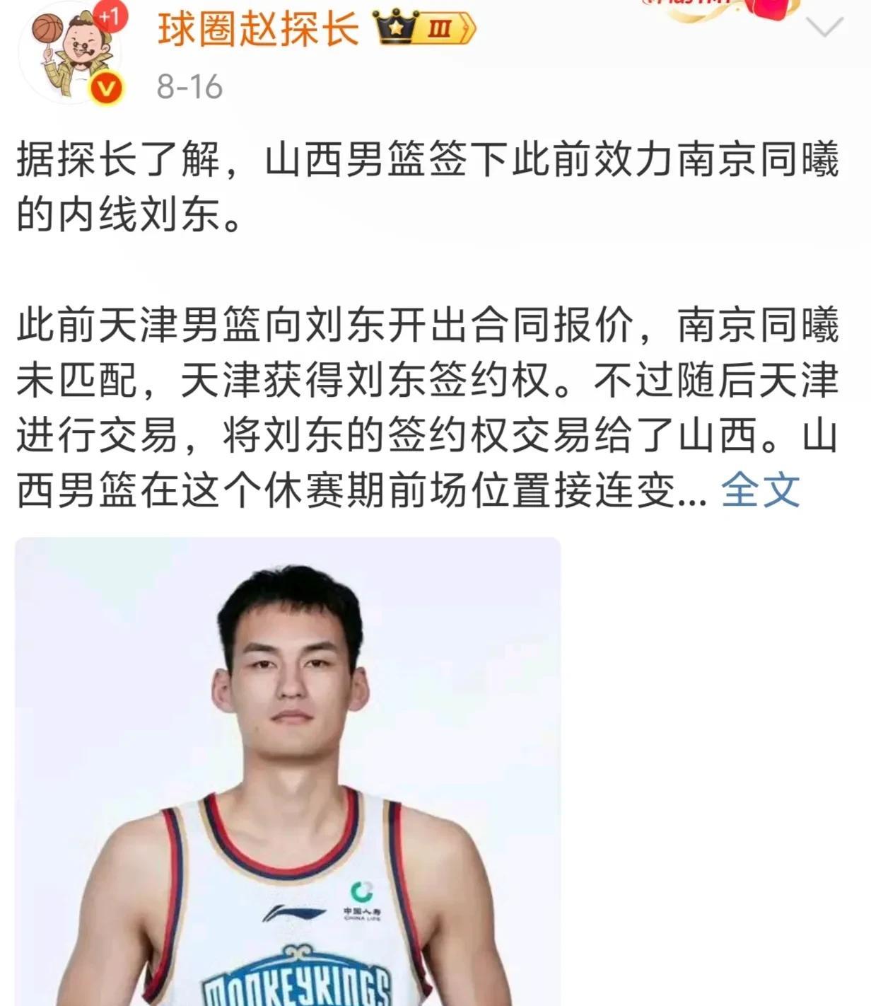 话说天津队还是会做生意啊!原本以为天津队通过合同报价拿下了刘东,没想到居然当起