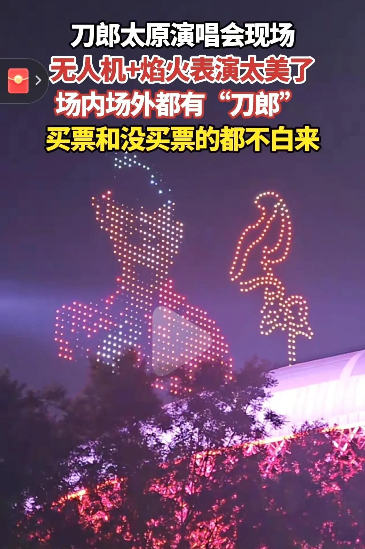 家人们,刀郎太原演唱会真的太值了!现场的无人机和焰火表演简直封神,无人机在空中排列出各种震撼图案,焰火腾空而起,将夜空点亮,火树银花美不胜收。 没买到票的朋友也别遗憾,场馆外的氛围同样热烈,到处都是跟着哼唱的歌迷,还有大屏直播演出,大家一起狂欢。可以说,不管场内场外,不管有没有票,这场音乐盛宴都让“刀郎”二字刻进每个人的记忆,来这一趟,绝对不亏 ! #刀郎太原演唱会#明星# #太原刀郎# #娱乐圈# #娱乐圈每日热议#