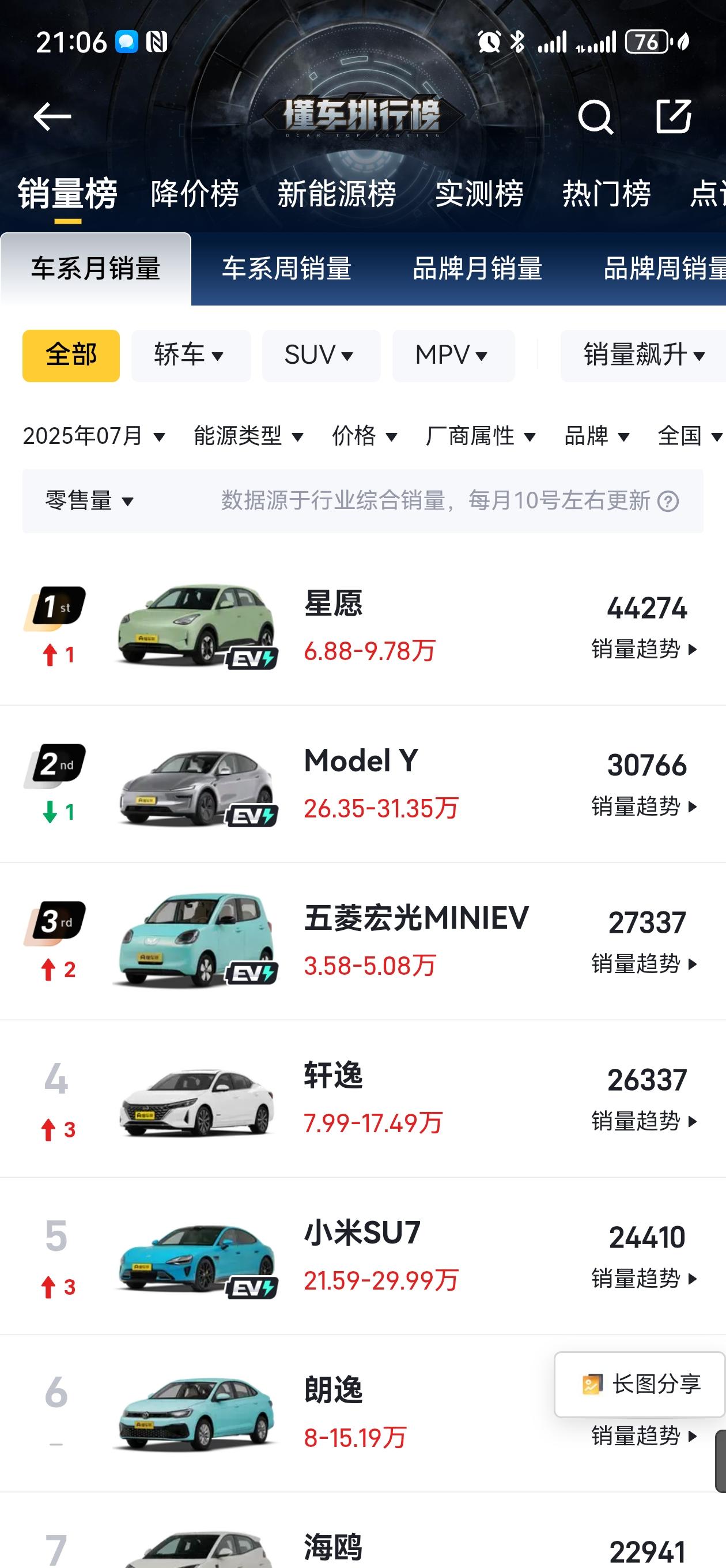 简单看了下自己买车后3个月的价格和销量,从目前来看销量还是以价格为主,主要体现在代步、节能、方便,星愿和五菱牢牢占据前3,前3唯一稳定的依旧是特斯拉(证明还是技术上有所优势及被认可),看了下销量自己这款已经下降到23位了,但再看了看插电混动车型,比亚迪几乎是统治级的,其实还是可以,至少还是榜上有名