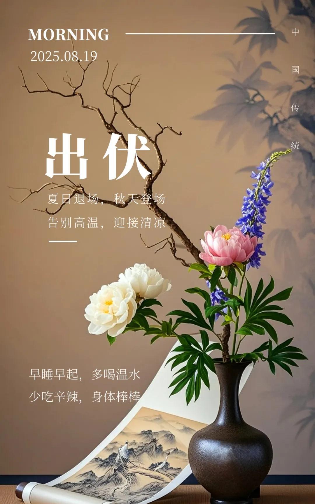 《五律·出伏盼秋》 今朝辞酷伏,暑退爽风临。 节序更迭急,幽怀自此寻。 风摇秋影媚,梦逐晓云歆。 夜寝皆安谧,金商送好音。 《七绝·出伏迎秋》 出伏炎消暑气收,秋风送爽意悠悠。 新程且待秋光好,奋进还期处暑酬。 《清平乐·出伏寄愿》 炎光隐暮,秋意徐徐诉。暑气渐消心暗语,祈盼祥辉满路。 愿如秋絮轻盈,共迎秋宇澄晴。朝夕皆能遂意,处暑再展新程。