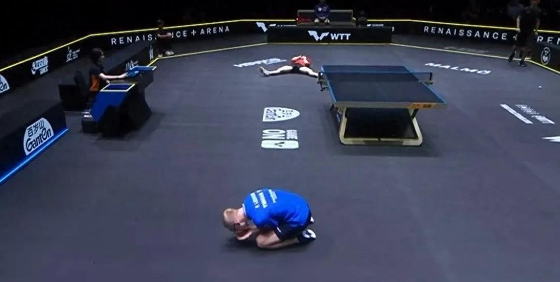 赢得惊心动魄,输得心有不甘。 张三疯和吉吉国王,一个世排第28,一个世排第6,欧洲大满贯首轮就奉献五局大战,最终张三疯3:2险胜吉吉国王。 这场比赛算得上欧洲大满贯目前为止最精彩的一场比赛。两人排名虽有差距,但实力却旗鼓相当,长传短吊,相持对攻都是一把好手。 第四局,吉吉国王没能把握住10-8率先拿到赛点优势痛失取胜良机,被张三疯12-10逆转。 决胜局同样张三疯12-10险胜。最后一球落地后,张三疯倒地庆祝,那阵势堪比夺冠;而吉吉国王则跪地怒吼,2分惜败,明显心有不甘。 奈何竞技体育的魅力就在于:赢了有多美好,输了就有多残忍! 最终,张禹珍3:2费利克斯·勒布伦晋级男单32强: 6-11,9-11,11-7,12-10,12-10