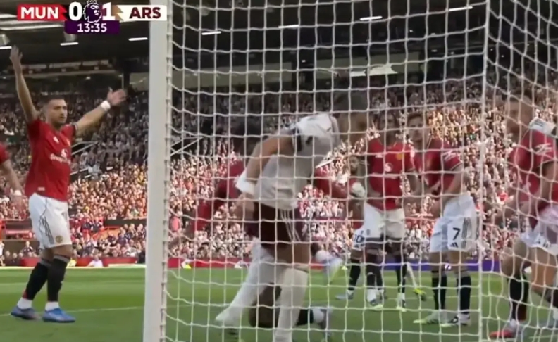卡拉菲奥里这个进球,是典型的捡了一只“死鸡”。当时阿森纳的角球发出后,曼联的门将