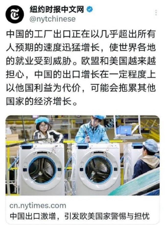 双标逻辑! 美国在历史上通过工业扩张成为全球最大经济体时,其出口增长未被指责“威胁他国就业”,而中国出口激增却被贴上 “拖累全球经济”标签,暴露出西方舆论对发展中国家的结构性偏见。