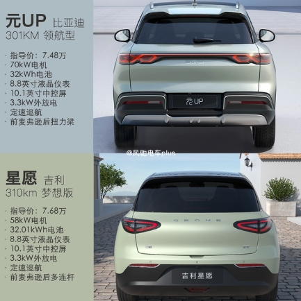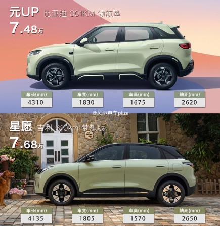 比亚迪元UP加推301km版,大战星愿海鸥海豚! 比亚迪发起狠来,不光打对手,绝对是连自己人打。元UP加推301km续航领航版,起售价7.48w。 这是4米3+的正儿八经SUV,去年指导价9万多起,现在直接不到7万5了,星愿不是要打海鸥海豚吗?