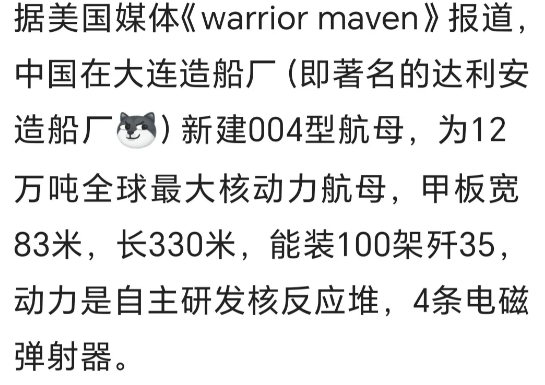 美国的消息总是很灵通的,对我们第四艘航母的信息居然掌握得这么清楚:核动力、四条电磁弹射器、排水量12万吨(全球最大吨位航母)。 核动力肯定没有错,但有网友认为不是普通的核动力,而有可能是最先进的钍基核反应堆动力。 现在问题来了,第四艘核动力航母应该叫什么名字呢? 因为钍基核反应堆是在甘肃武威(也是世界首座钍基核反应堆)试验并成功,所以甘肃网友强烈建议叫甘肃舰。 当然其它省份的网友自然不乐意了,因为前面几艘航母都是以沿海省份命名的,所以广东、浙江、江苏这几个经济发达的沿海省份呼声最高,那么大家觉得应该叫什么?