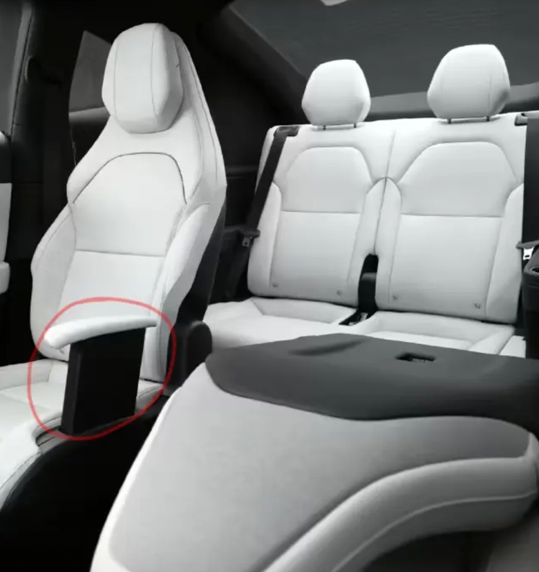 【第一次见这样设计二排扶手的!】 特斯拉model YL的第二排扶手设计非常非常奇特。它是电动升降的,而且尺寸不大,可以说有胜于无。我觉得这种设计给 二排扶手 开发了一个新的思路。尤其是适合车内宽度不是很大,硬要上三排座椅,二排中间过道不是很宽的车型。这样设计就很讨巧。