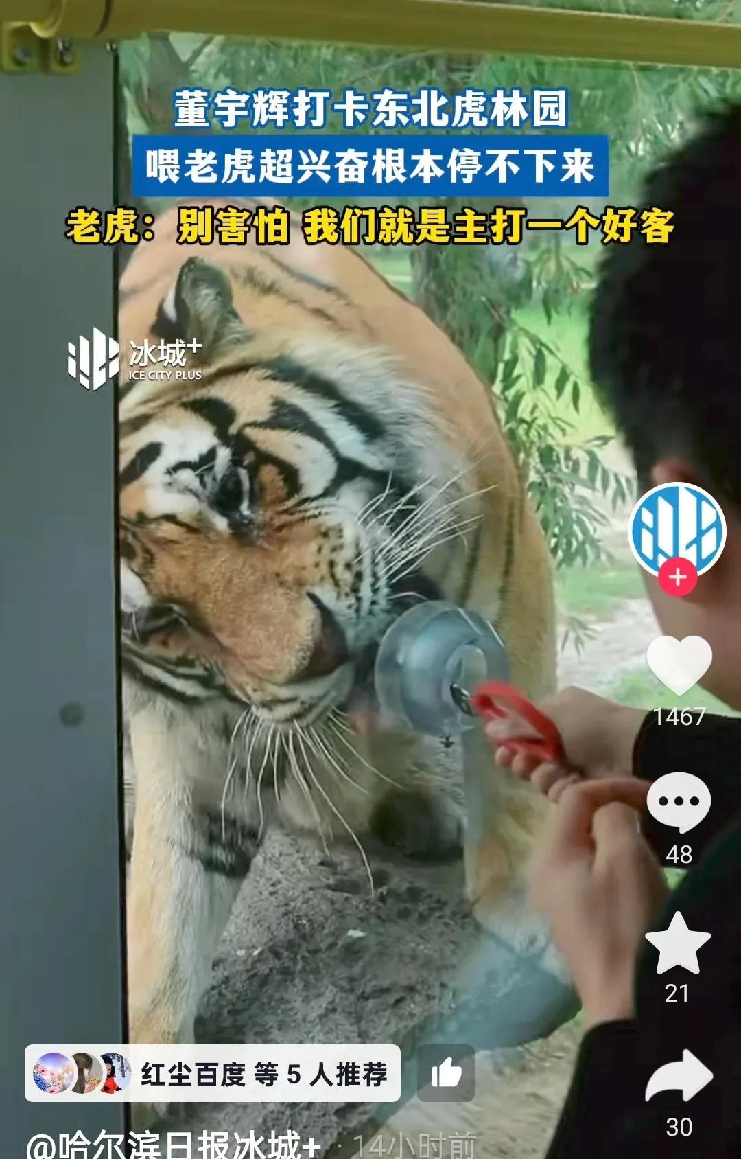 今天与辉同行阅山河是在伊春,转场4个多小时,宇辉团队一夜都没睡,凌晨5点多才到,宇辉更新了抖音更新了视频,外场费钱又辛苦,只有宇辉这么执着的在做。 今天下午3-4点,5-6点,宇辉带我们去鹿苑和森林公园,晚上8点给我们观看节目和卖货。 昨天下午宇辉又给了我们一场高端大气上档次的视听盛宴,黑龙江交响乐团给我们20万爱辉区朋友们演奏,汉森这次又欠了500万,心满意足,决定跟着宇辉打工一辈子还债。 彪哥遇见虎哥,还是虎哥厉害,彪哥瞬间服服帖帖,给虎哥喂吃喂喝,还要哄着虎哥,慢一点虎哥就发脾气,有一个虎哥也叫二蛋,追着车跑了很久,边追边叫董二蛋:兄弟。在能“萌虎”乐园,宇辉看到小家伙们喜欢的不得了,几次伸手想摸摸,被讲解员制止了。小老虎想出逃被饲养员抓回来非常生气,弱弱攻击饲养员,宇辉说的一句话大家都泪目了,宇辉说:“当你弱小的时候攻击都那么可笑。”真心希望宇辉强大起来,强大到没人敢再欺负你。 晚上彪哥给我们安排了芭蕾舞和民歌,最后12点了,宇辉唱了一首歌