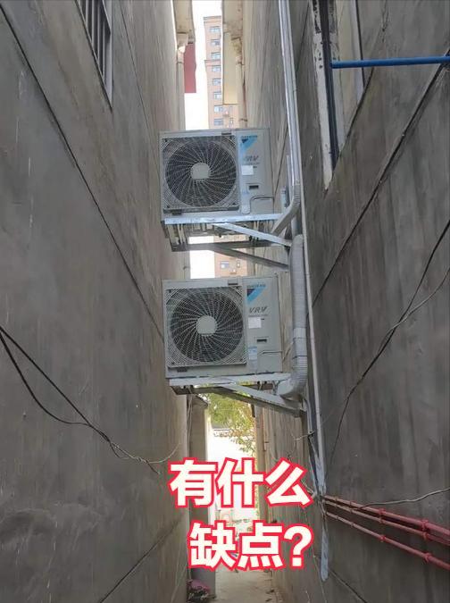 右面的房子明显是后盖的,你给左边的邻居留足空间了吗?平行于墙面都是勉强放下的,侧过来根本装不下。平行于墙面明显散热不好,但凡侧过来能装下,谁会非要那样装?