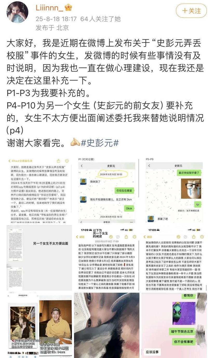 《隐秘的角落》里的“严良”也塌了?才刚刚满20岁的史彭元被爆同时和多位女生暧昧不清,总结来说就是:去年5月,女生A开始和史彭元谈恋爱,但没过多久,他就以“粉丝和公司压力”为由提出分手,最终在6月18日正式分手,分手时他还给女生A画饼,说等工作稳定后再复合,但转头就把朋友圈给屏蔽了。离谱的事来了,在分手前的6月15日,他就已经约了学妹B出去逛街。现在又被网友偶遇,他疑似和北电学生林芊去画情侣画了。也不是说不能谈恋爱,但这人看起来就不是一个对待感情认真的人,没想到现在05后小生都玩这么[送自己一朵花]~