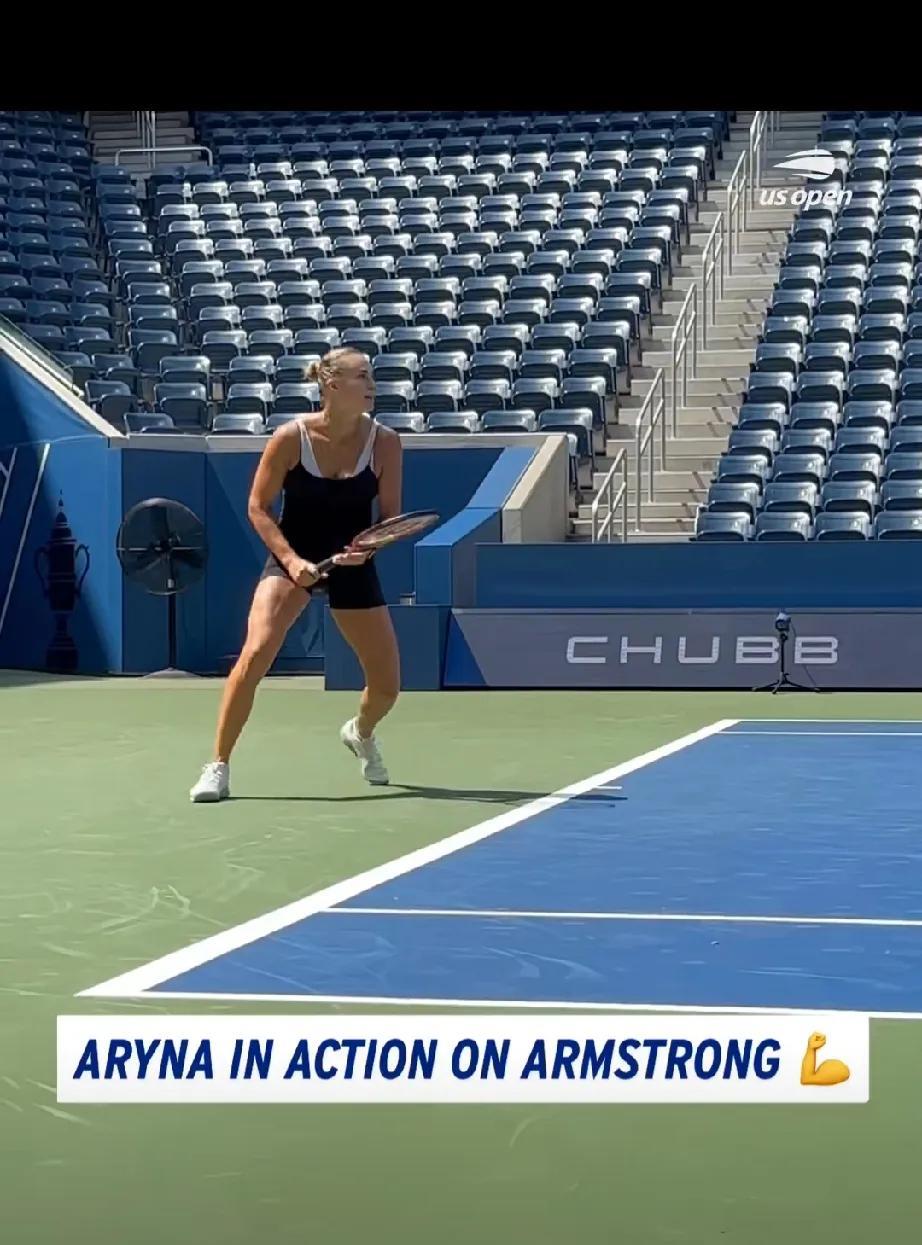 萨巴伦卡已到达纽约,开启了美网热身。 一身黑色的夏季运动装,简洁利索,打起球来虎