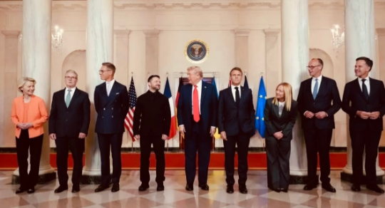 【特朗普连续成功举办高层会谈】 WSJ今天报道,美乌总统会谈时泽连斯基没有拒绝“土地交换”,但泽连斯基坦言难以安置人口和绕过乌克兰的宪法,他强调指出可以研究一下“按比例交换”。这与此前他坚持的“乌克兰宪法绝对不允许进行领土交换”的立场相比,明显软化了不少。现在是“很难”绕过宪法,而不是先前描述的“不可逾越”,政治家的智慧就是用来解决人类难题的,不然的话,阿猫阿狗都能当总统,人类文明还怎么进步? 从美乌欧及北约的合影来看,乌总统虽不是“圈内人士”,却站在C位的特朗普身边、与马克龙平起平坐,而且泽连斯基一反过去严肃表情,露出了久违的笑容。至少表明,在此次北约、欧盟最有权势大人物聚会中,特朗普和泽连斯基对彼此表现都很满意。 而欧盟和北约显然被美国边缘化了,看一下照片就知道了,欧盟领导人和北约领导人被安排在末端,不明白的人还以为北约与欧盟正在守护着以特朗普为中心的美国,实质上是美国正在冷落欧洲和北约,或者说,欧盟和北约在特朗普眼里只是美国的附庸,其地位还不如能给美国带来实实在在利益的乌克兰或俄罗斯。