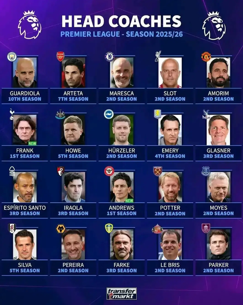 其他球队大多1-2个赛季,英超执教压力大,动不动换教练!