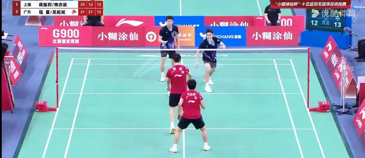广东男队小组第一出线,美人星和吴师傅立大功了啊,一双不幸输球的情况下,还顶住了压力,用热血赢得了比赛,真的是狂吼组赢了闷闷党,邦邦太闷了,喊起来,旁边的商亦辰更加闷,最后的决胜分完全就被对手一波流了。 蒋振邦/商亦辰 23-21、12-21、14-21 程星/吴拓斌,广东出胖子啊,著名胖子梁伟铿,哈哈哈,吴师傅这灵活的胖子很讨喜呢,激情四射,还神似保木卓朗。