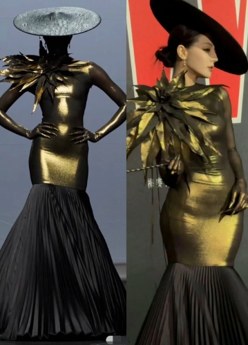 就在今天,迪丽热巴出现在了W年度光影盛典红毯上。她穿着一袭黑色烫金鱼尾裙,梳着大光明盘发造型,头上斜戴着一顶复古礼帽。