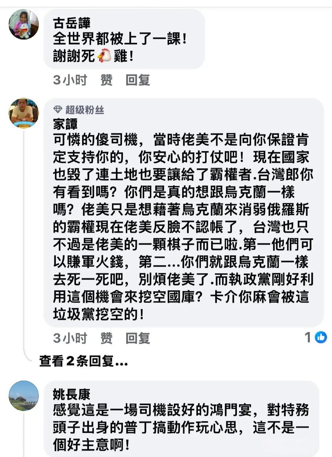 泽连斯基表示,已准备好与普京的展开会谈!台湾网友却破防了! 消息来源:台湾省媒体 8月19日据台湾省媒体报道,泽连斯基表示“领土问题将由我与普京讨论”,最后泽连斯基还是喊话特朗普称“需要额外的资金”。 该新闻一经发布之后,立即引起了台湾省网友的热议,不过对于他们来说有可能最多的是破防! 他们总想着拿自己与乌克兰相比,觉得有朝一日欧盟与美国都会像之前那样力挺乌克兰,但他们是不是想多了? 他们在美国与欧盟的眼中连乌克兰都不如,一直被视为一颗有用的棋子,假如哪天没有利用价值了,就是变成了一颗妥妥的弃子!