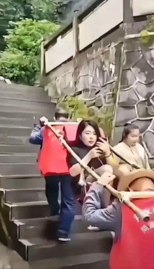 平心而论,这名女子的粗心大意,确实令后面抬轿的大叔非常难受,全程低着头看着石台阶,不仅体力消耗大,而且自己的视线也会受阻,容易造成意外。