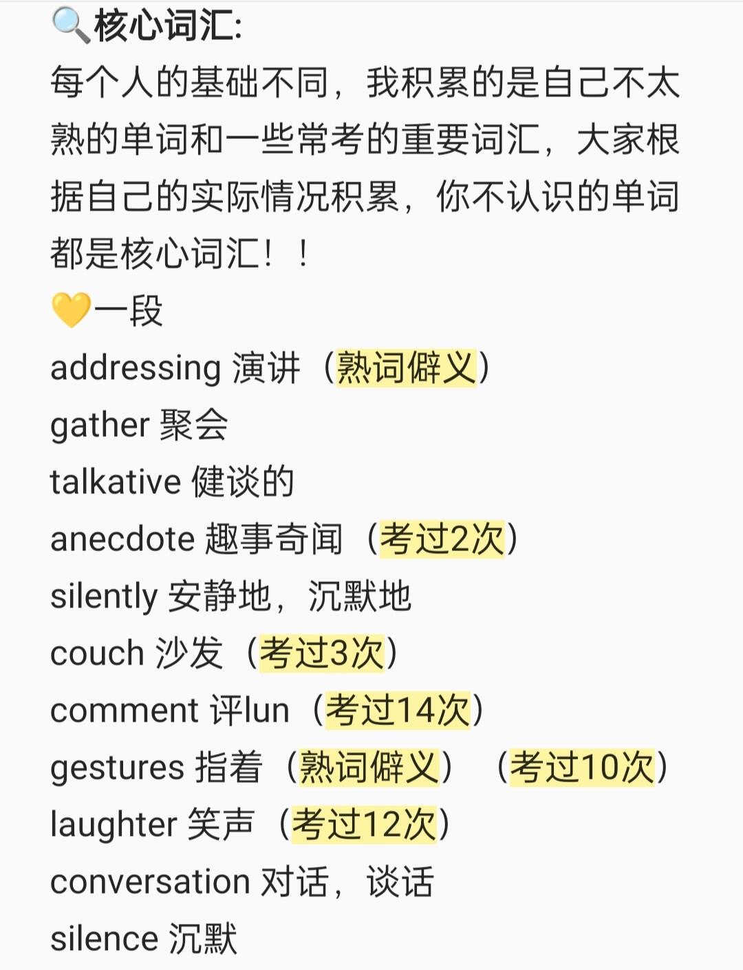 每个人的基础不同,大家根据自己的实际情况积累,你不认识的单词都是核心词汇!!