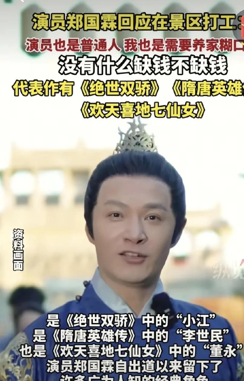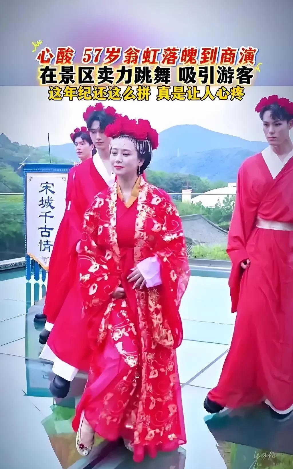 继马景涛之后,越来越多的明星开始在景区演出。 马景涛带火了杭州宋城景区,已是63岁高龄的他,扮成他的经典角色《倚天屠龙记中》张无忌的模样,在台上吊威亚、唱歌、跳舞,卖力地演出。 6月,马景涛在室外顶着高温演出,晕倒在直播舞台上,引发了大众网友的关注。 大家感到诧异,马景涛从艺几十年拍剧无数,怎么还会为了这点小钱在这个年龄,不顾形象,拼命捞金? 马景涛之后,港星翁虹也出现在宋城景区的舞台上,她一身红衣,头戴数朵红花,扮的是她在《春光灿烂猪八戒》中饰演的猫妖一角。 近日,演员郑国霖也出现在景区,他身着古装,扮演着他曾饰演过的经典角色。 面对大众的置疑,郑国霖倒是相当坦然,没什么缺钱不缺钱?演员也是普通人,也需要养家糊口。 影视明星到景区打工,在大众看来,是落魄,是过气,对于他们来说,只是一份普通的工作而已。 据知情人透露,马景涛在杭州宋城的演出是一天1.8万元,这个收入虽然不能和他在顶流时相比,但也远远高于普通人了。 马景涛和前妻吴佳尼生育两个儿子,儿子都读的是国际学校,花费不菲,做为老父亲的马景涛不得不抛头露面给儿子挣学费。 现在大环境不景气,别说这些过气的老演员,就是正当红的演员也很少接到戏,有很多新生代演员都去演短剧了。 明星尚且如此,普通人的日子更难。