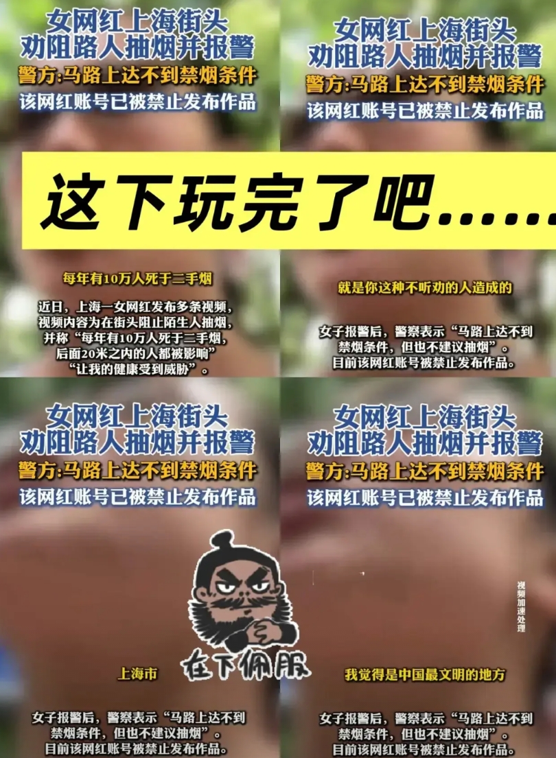 要求马路上和公共站台禁烟的网红被禁了,吸烟有男有女,法律和规则没有禁止,你们一通