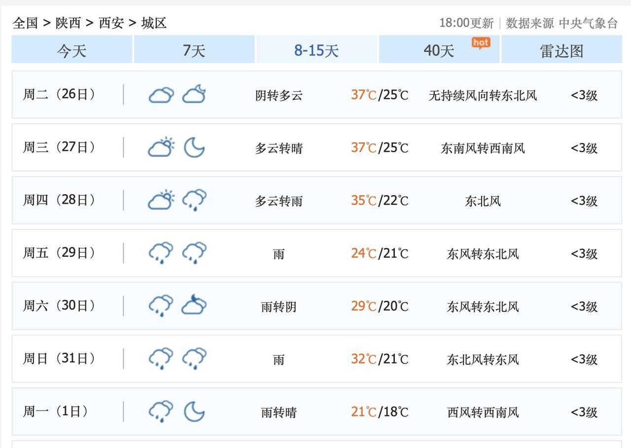 太令人窒息了吧?!干爽的西安市,即将变成闷热的桑拿天啊!8月20日到25日,西安市,持续35度到39度高温,可是却可能会时不时来点小雨……8月20日,西安气温27-39度,有小雨……8月21日,西安气温27-36度,有小雨…… 8月25日,星期一,西安有小雨,气温26-36度…… 我的个天啊!西安市,这高温天气,时不时来点小雨……绝对不会清凉清爽啊!是谁都害怕这种天气预报啊! 不得了,西安人,8月最后10天,还是果断去秦岭清修吧!#光线摄影世界曾兰谈天说地# #头号创作者激励计划#