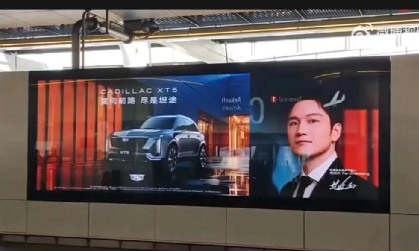 樊振东的应援大屏来了! 这次是在德国法兰克福机场,凯迪拉克作为品牌方为东哥投放的