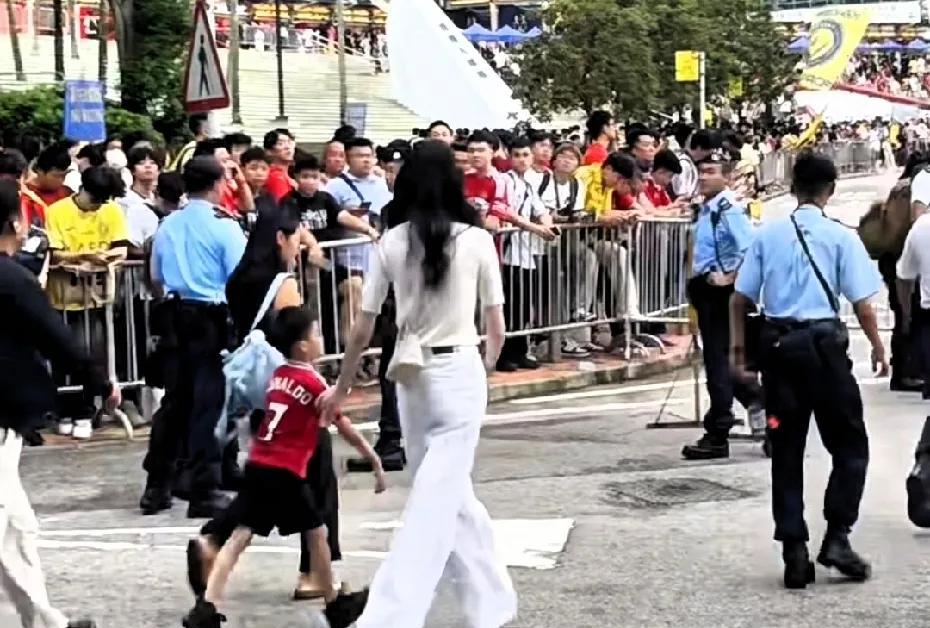 有网友在香港大球场偶遇奚梦瑶和她儿子,小家伙穿着标志性7号球衣超可爱!估计受他爸