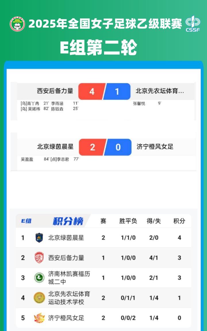 2025#女乙联赛 小组赛B、E组第二轮战报及积分榜