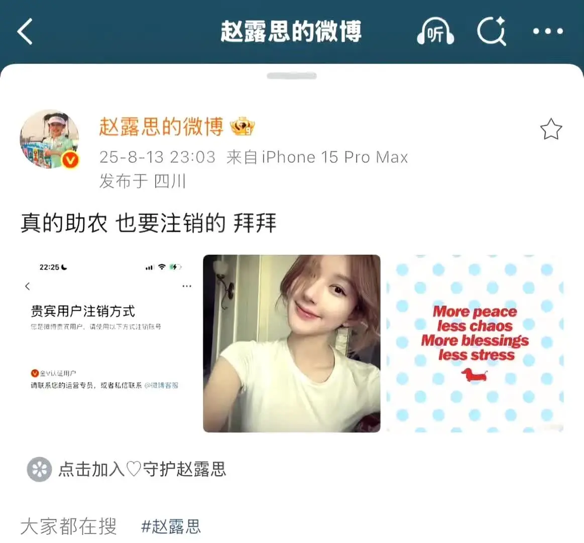 赵露思把微博账号注销了 ——8 月 19 日这消息一出来,好多人都在猜:谁最坐不住?
