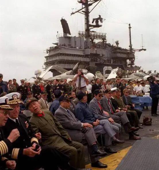 1980年,耿飚和刘华清带着代表团访美,那可是八十年代、他们身穿65式军服,登上美国航母。 耿飚和刘华清代表团成员一起在航母上参观各个区域,参加观各种武器装备。 那个时候,我国刚刚改革开放,还没有航母,看到这些,两位将军不知道心里有多着急呢?
