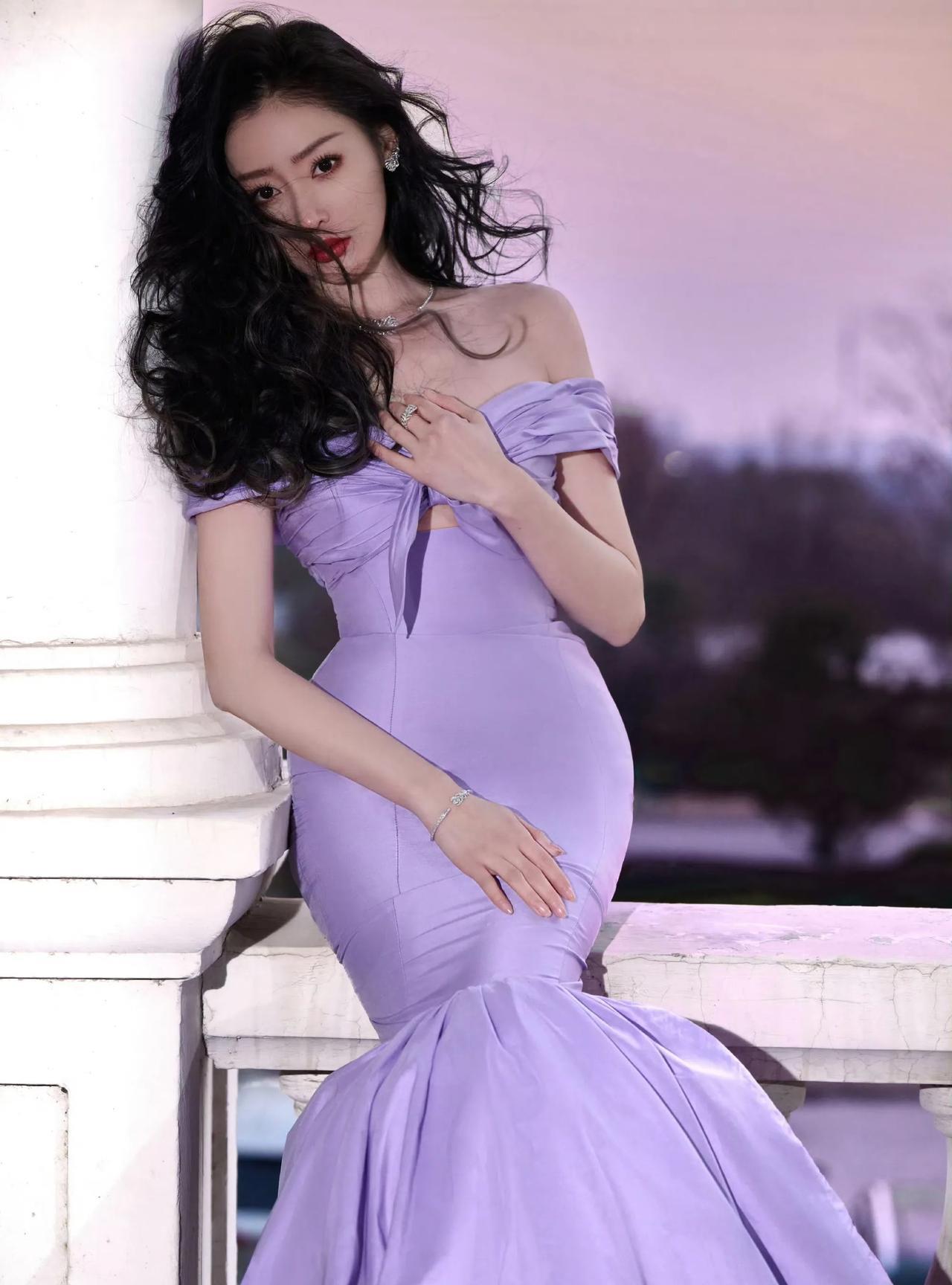 张天爱穿浅紫露肩裙,美到开挂!脸蛋精致似瓷娃娃,曲线逆天,随手一摆pose,性感直接冲破屏幕~