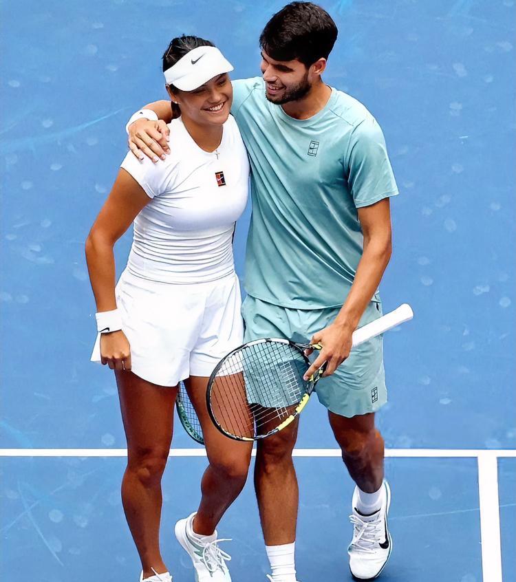 德雷珀:对面这俩笑得见牙不见眼,真是 气不打一处来,佩姐,咱把他俩扫走,怎么样? 佩古拉:好的,老弟,这是我的主场,他俩老抢风头,我也想把他俩扫走!! 德雷珀:好的,目标一致,干!! 拉杜卡努:卡,你说一定要为我赢球的,说话不算数,你看吧,被破掉的两局都是你的发球局,让我如何相信你… 阿尔卡拉斯:小雷子,你坏了我的好事,单打千万别让我遇上你,否则,你懂的… 德雷珀:哈哈哈,你过来呀,恋爱脑…. #美网混双# #阿尔卡拉斯# #德雷珀# #拉杜卡努# #佩古拉#