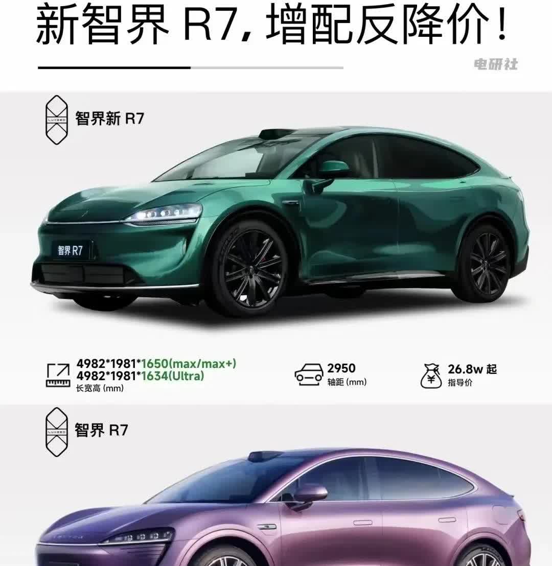 🔥【智界R7新款预售炸裂!30万预算闭眼冲?】 新智界R7预售开启,8小时狂揽2万订单!💰 26.8万起,配置不降反增,华为ADS 4.0智驾+192线激光雷达+800V超充,续航最高1673km,空间、智能、性能全拉满! 对比老款,价格直降3万+,但激光雷达、高阶智驾、更大电池全给足,堪称“加量不加价”典范!🚀 手握30万,你会选它还是Model Y? 评论区见!