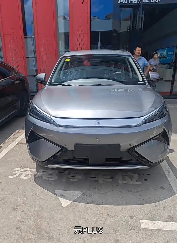 今天到了比亚迪的4S店,来帮提一台元plus。这是一位做二手的同行介绍的,他知道我们帮提车,同样4S店提车价格要便宜一些,还帮忙看车验车。提的就是这台车,元PLUS,430公里续航里程的领先版,指导价115800的。看漆面有没有刮蹭,看是要这个配置版本。