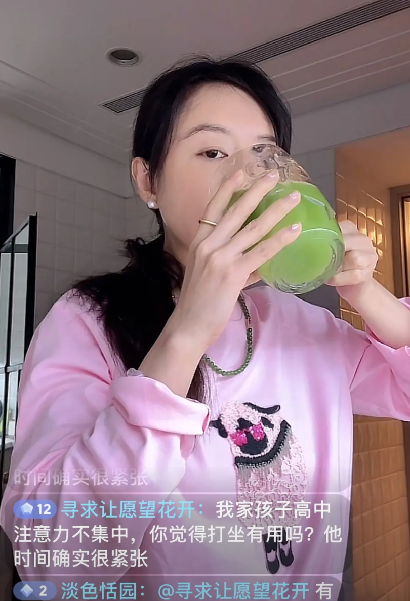 8月20日一早,影视演员张静初准时出现在直播间,张静初先静坐一个多小时后,就开始了炸水果汁,一早满满的这一大杯水果汁喝掉,然后喝了一瓶她小黄车里挂的甜菜根汁,三瓶好像85元,这甜菜汁也挺贵的!