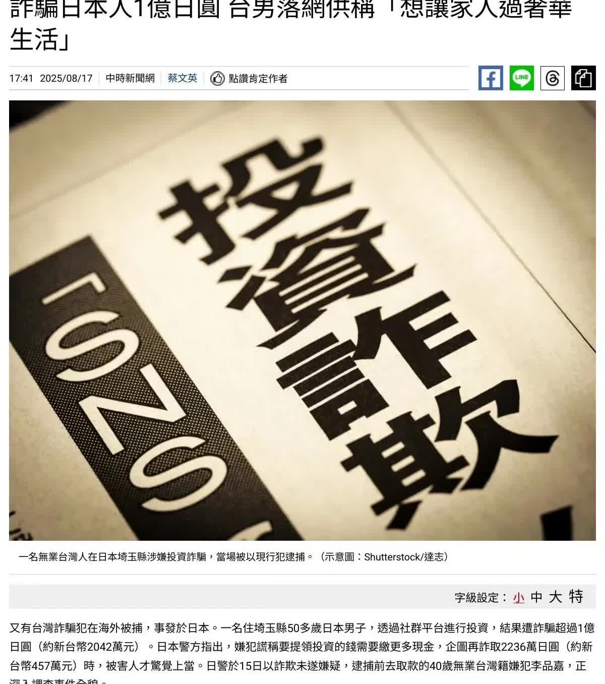 连台湾省的警察都无奈承认“台湾是诈骗之岛,诈骗集团的天堂”。 “普发一万”的短信一共诈骗了500万,今年已造成78名民众受害,结果诈骗犯被“无保请回”也就是不用交保证金就释放,台湾人还是自求多福吧。 警察也不愿意抓了,抓的没有放的快,抓来也没用。 此前还有一台湾男子诈骗到了日本,不过这个要支持,这也算是一种复仇吧。