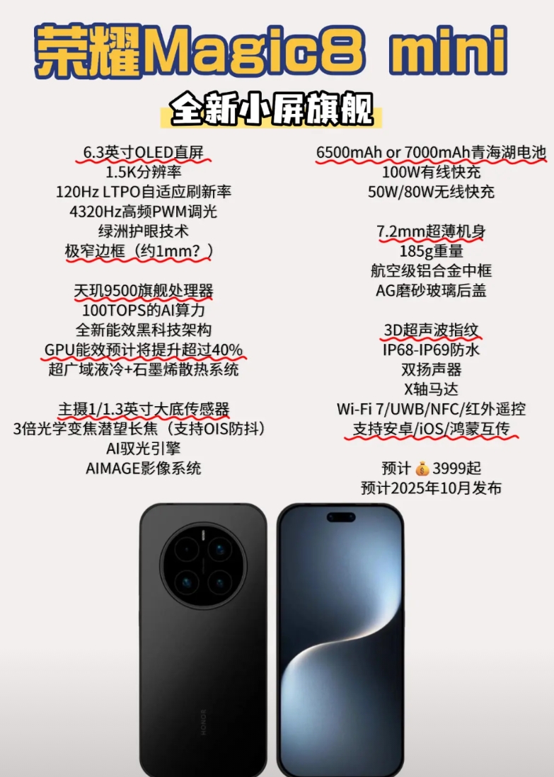 荣耀Magic8 mini爆料汇总,这不得卖爆?