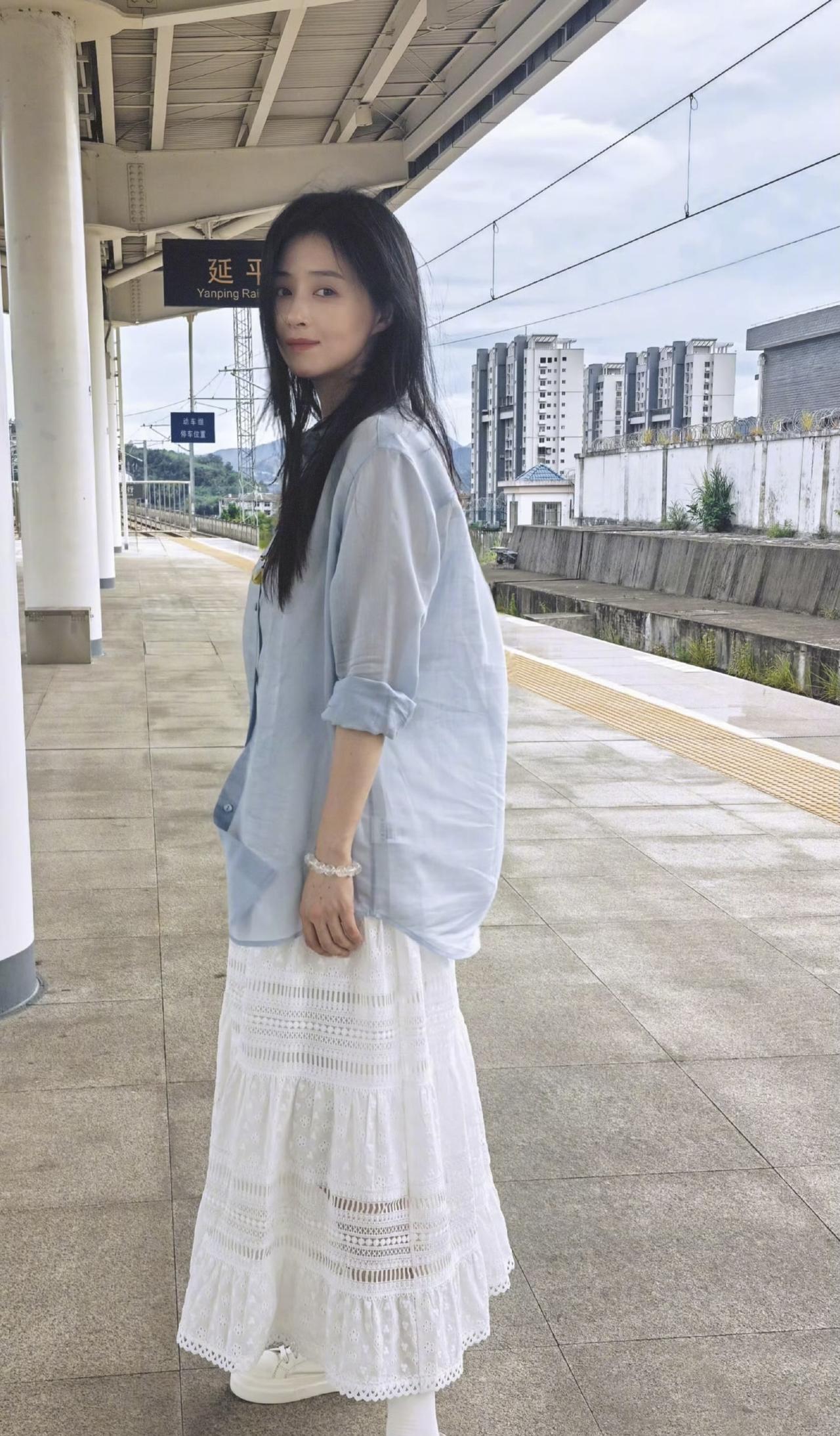 8月20日,蒋欣晒出一组站台美照,还在评论区晒出了一张生活照,好甜美可爱啊。 42岁的蒋欣,还能穿出清新的少女感,这状态让人羡慕啊。#蒋欣#