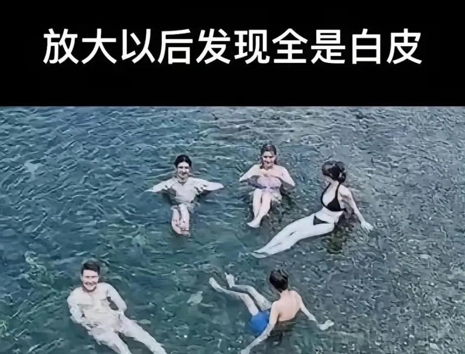 日本网友又进化了,开局一张图,污蔑中国人全靠编故事! 日本网友发了一张几个人在水里洗澡的图,配文“外国人在景区享受游泳”,下面日本网友看都不看,直接污蔑“全都是中国人”,毫无理由指责中国人没有素质。 其实只要把图打开,稍微放大就能看清根本不是中国人,全员都是西方的白人,两男三女在清澈见底的水里嬉戏。 很多日本网友明显找到了流量密码,只要抹黑中国、污蔑中国,就有巨大流量。往往还有大量的无脑网友相信,包括不少不明真相的国人。网络引战他们每次做的都“游刃有余”!国人还是要警惕。 听说过眼睛色盲,但是没见过黄白不分的色盲,他们这是心瞎了,才会做的事。