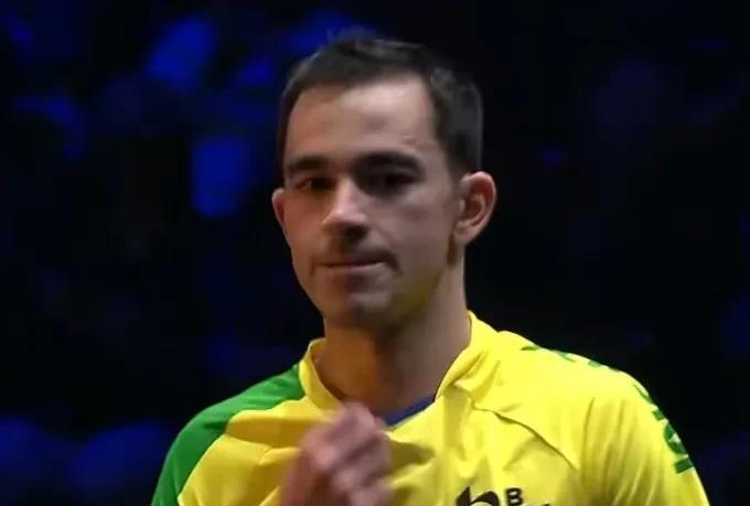 还是心里紧了,教练也没把温瑞博唤醒! 今日凌晨的欧洲大满贯赛瑞典站的比赛,男单次轮,中国队小将温瑞博迎来与世界杯冠军雨果交手的机会。 温瑞博身高臂长,成年队赛场上成绩一般。应该说,温瑞博今天表现不错,以13-11先胜一局。第二局,5-11负,雨果的侧身攻和反手让温瑞博打起来十分难受。第三局,温瑞博11-13惜败。 第四局,温瑞博臂长奏效,6-1领先,但此后被雨果连续得分,温瑞博明显手紧了,下手不再果断。刘志强教练提醒小温,不要想着下一球,敢于上手。有鼓励,有批评,但是温瑞博还是没能将教练的战术贯彻下去,手握5个局点被雨果卡尔德拉诺翻盘成功。 没有假若,温瑞博的这场球输得可惜,学费贵了。但是也要表扬一下,大赛的紧张是难免的,他与对手周旋了四局,不算脆败,三局都打到了10+。 下一轮,国乒男单只剩下林诗栋了。