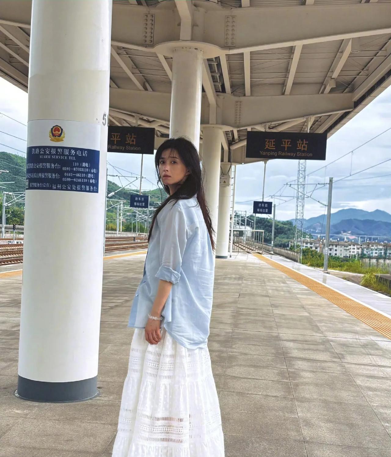 蒋欣在南平延平站的回眸! 8月20日,蒋欣在社交平台晒出了四宫格,走向车站,在车