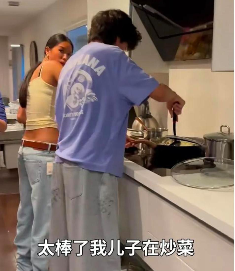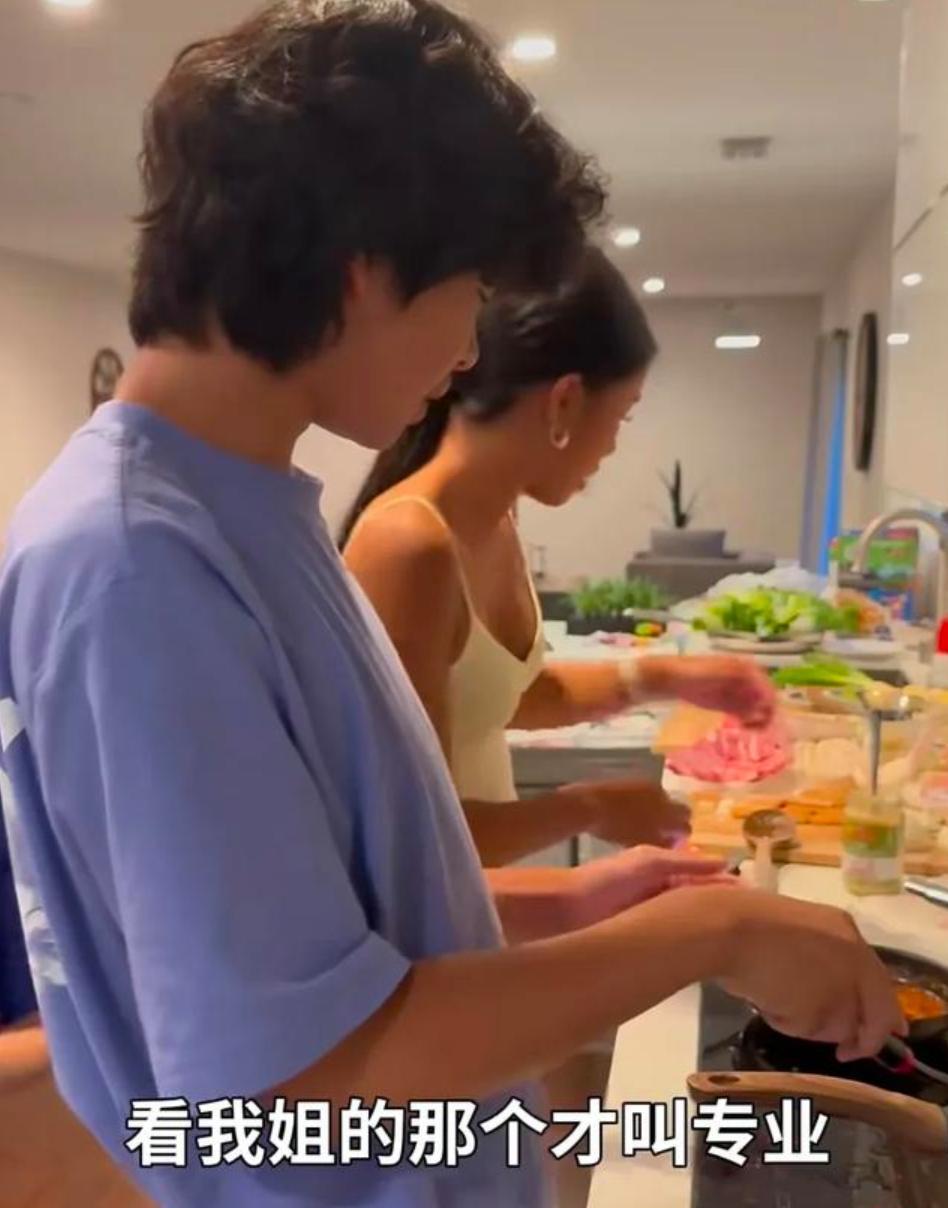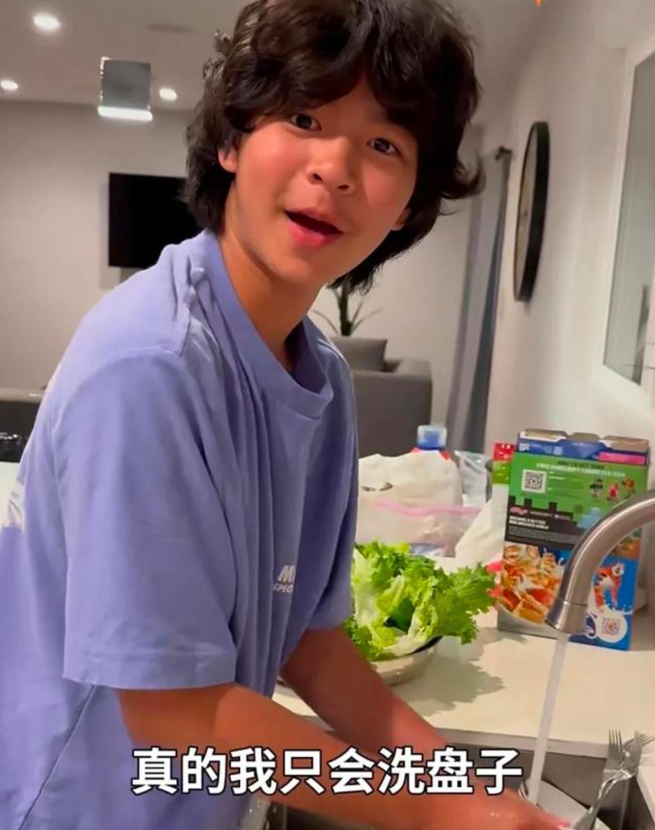 张庭晒儿女下厨,16岁林希瞳穿吊带煮麻辣烫,弟弟洗盘子像小老头,一家人真幸福,其乐融融。