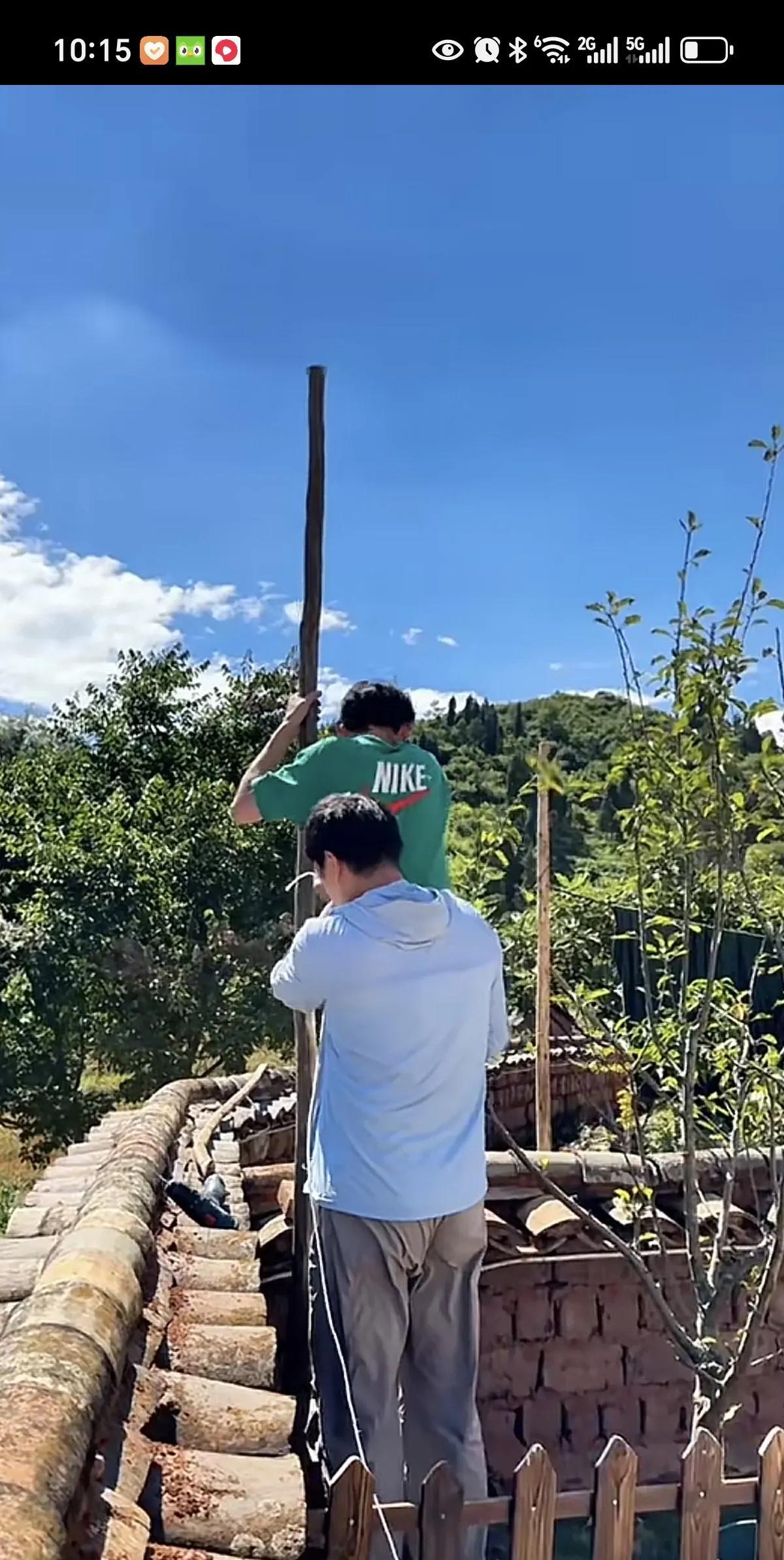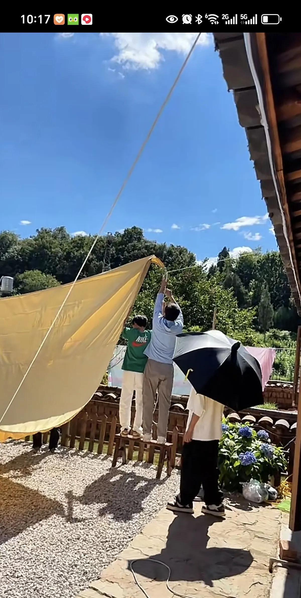 高航装个天幕,就能看出来谁的动手能力几乎没有了[捂脸]。 高航在网上买的天幕到了,跑来金哥家小院来装了。 刚好向晗也在。 高航发现绳子不够,金哥让徐敏去买。 向晗打个伞,看着他们弄。 高航爬上爬下,挖洞钉木桩的,金哥还在旁边帮帮忙。 徐敏回来也加入帮忙队列。 只有向晗除了动了下午嘴,基本上没动弹过。 果然是公平的,给了向晗艺术才能,但是他的动手能力几乎没有[憨笑]。