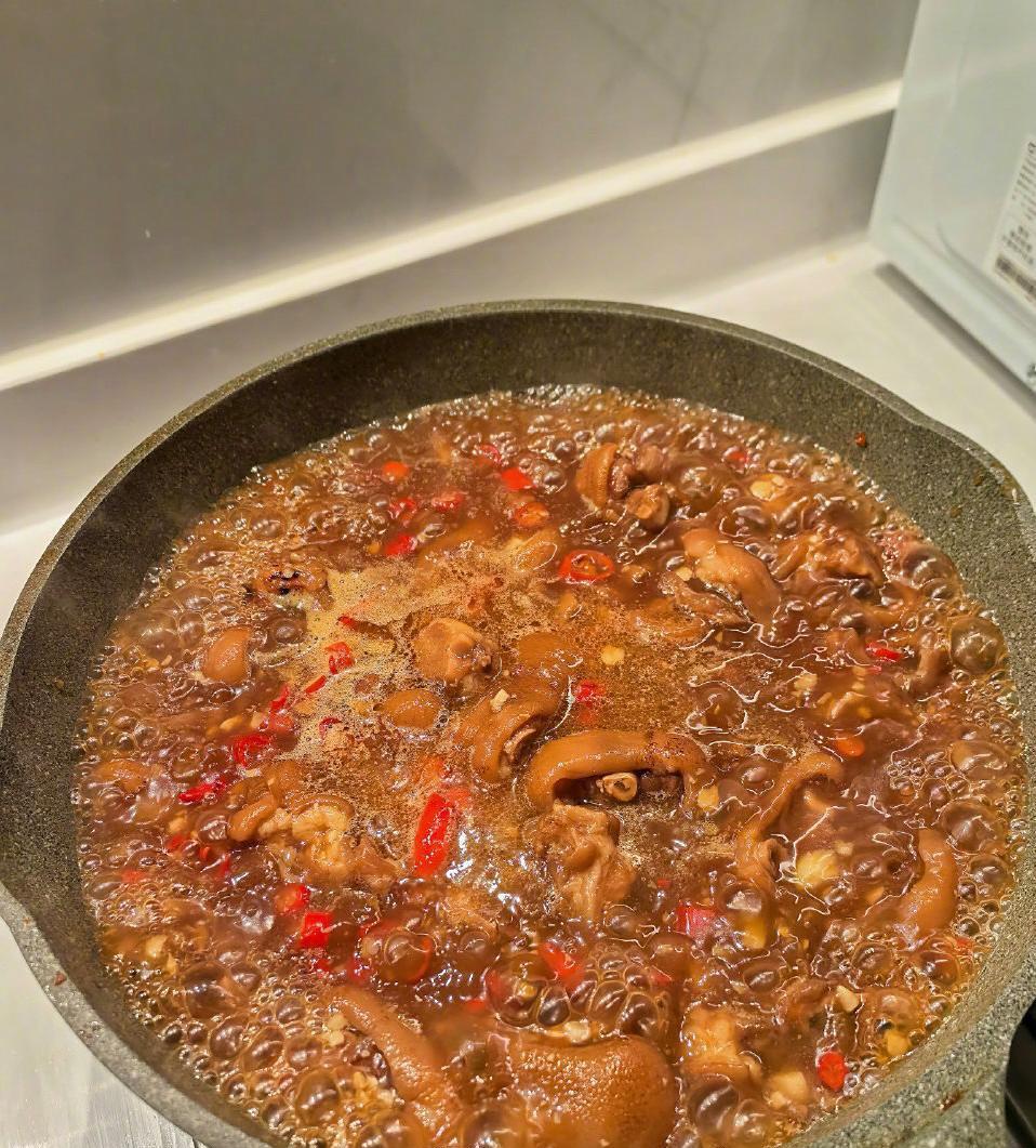 王栎鑫有点厨艺在身上的,这锅猪蹄看着就很入味软烂,味道一定不错~长得很帅,皮肤也很好。